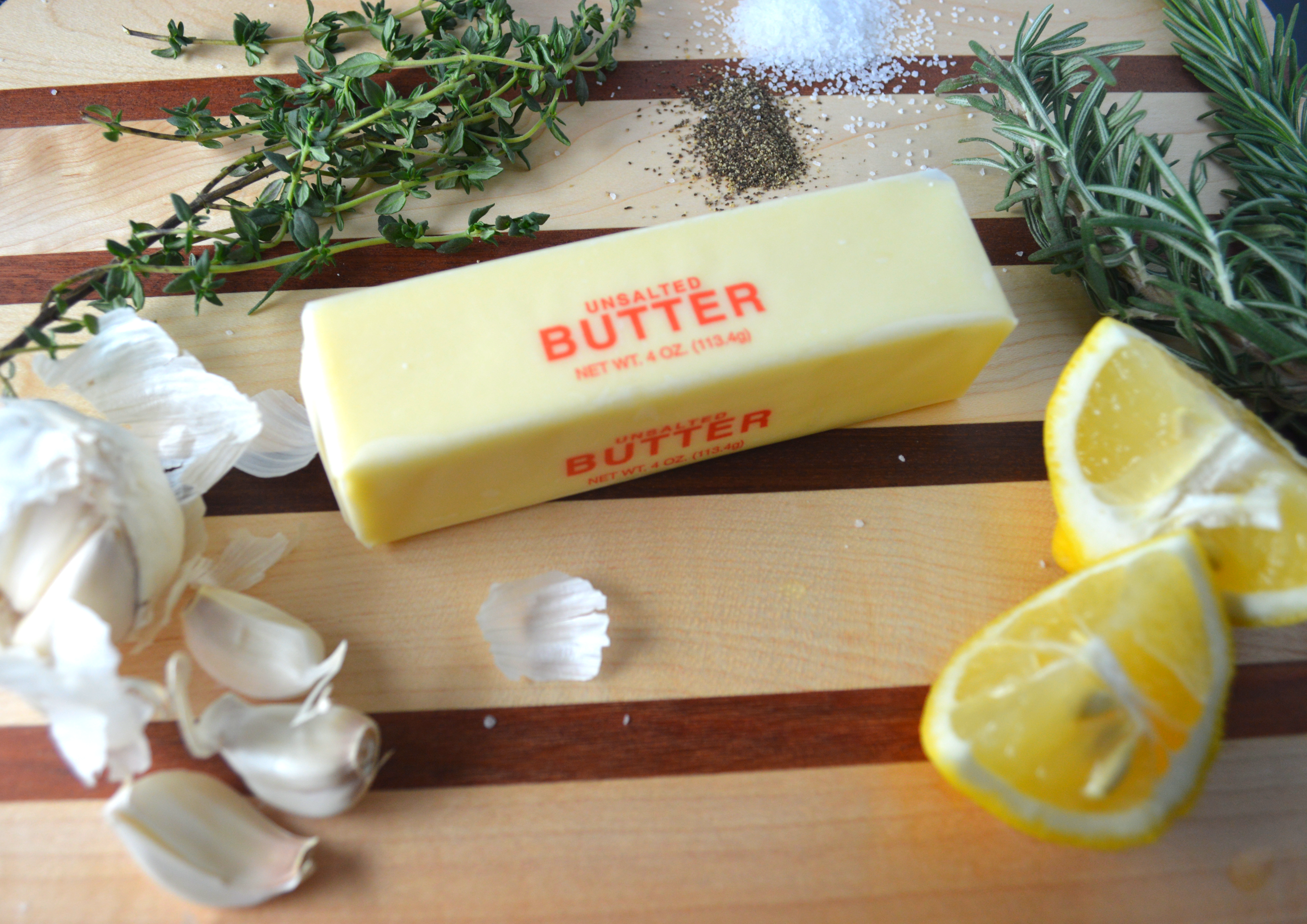 Compound butter is a great way to impart a ton of flavor into a dish. I don’t use much butter in my cooking, but when I do I prefer compound butter. 😉 This one is really more of a technique than a recipe. You can use any combination of herbs that you love or have on hand. I love the combination of thyme, rosemary, sage, garlic and lemon. It reminds me of Thanksgiving stuffing which is my favorite side dish anytime of year. Bread, butter, herbs, celery, and onions make me a very happy girl. But, I digress. Back to compound butter. It is a fun way to spice up a roasted chicken, steak, a piece of fish, or some sauteed veggies. It takes plain old butter to a whole other level of flavor. Slather it on a slice of baguette to dip in a big bowl of spring minestrone. Soup and bread is a great combination for a filling meal on those spring nights that are still a little chilly and you want something warm and comforting. If you are using this compound butter specifically for roasted chicken, you can sub half of the butter with some olive oil. I like adding half olive oil because it makes me feel better about what I am eating. Plus, it turns out beautifully golden and crispy.