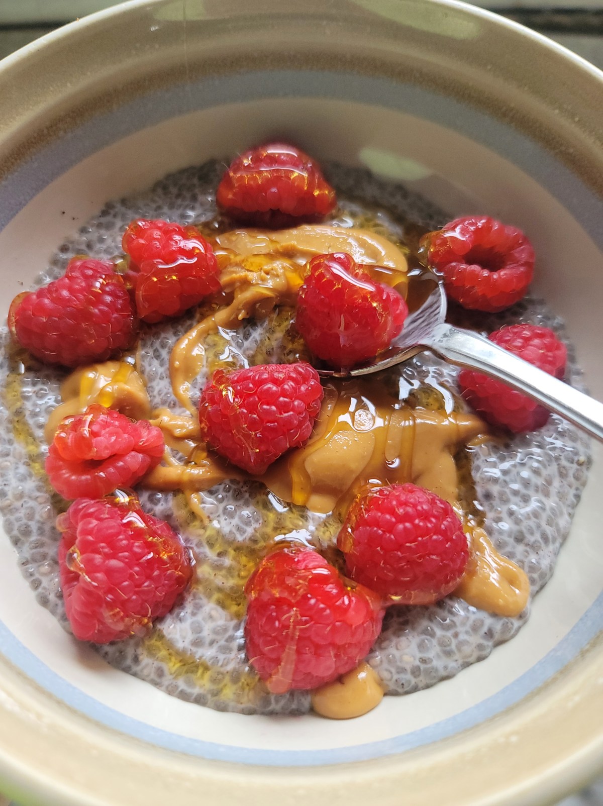 Mix together in an airtight container. I prefer to make this the night before and top it with fresh fruit, nut butter, and a drizzle of honey. Chia pudding will last in the refrigerator for up to 4 days. If it becomes too thick, just add a little more milk!